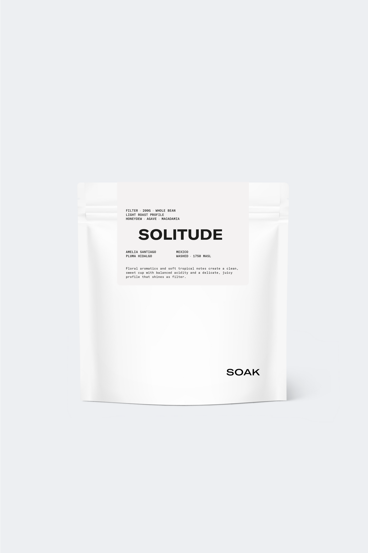 Solitude comes from Amelia Santiago, a producer within the Café El Zapoteco project in the Sierra Juárez, Oaxaca—a community of around 180 coffee-growing families led by Romulo Chavez, centered in Santo Domingo Cacalotepec.